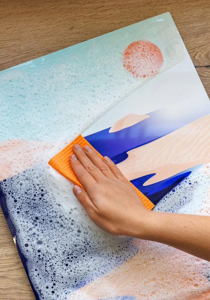 This metal print is a dimensional and high-quality piece of art that stands the test of time while remaining easy to clean and care for. The artwork looks luminescent against the wall and the metal base means it’ll last a long time.